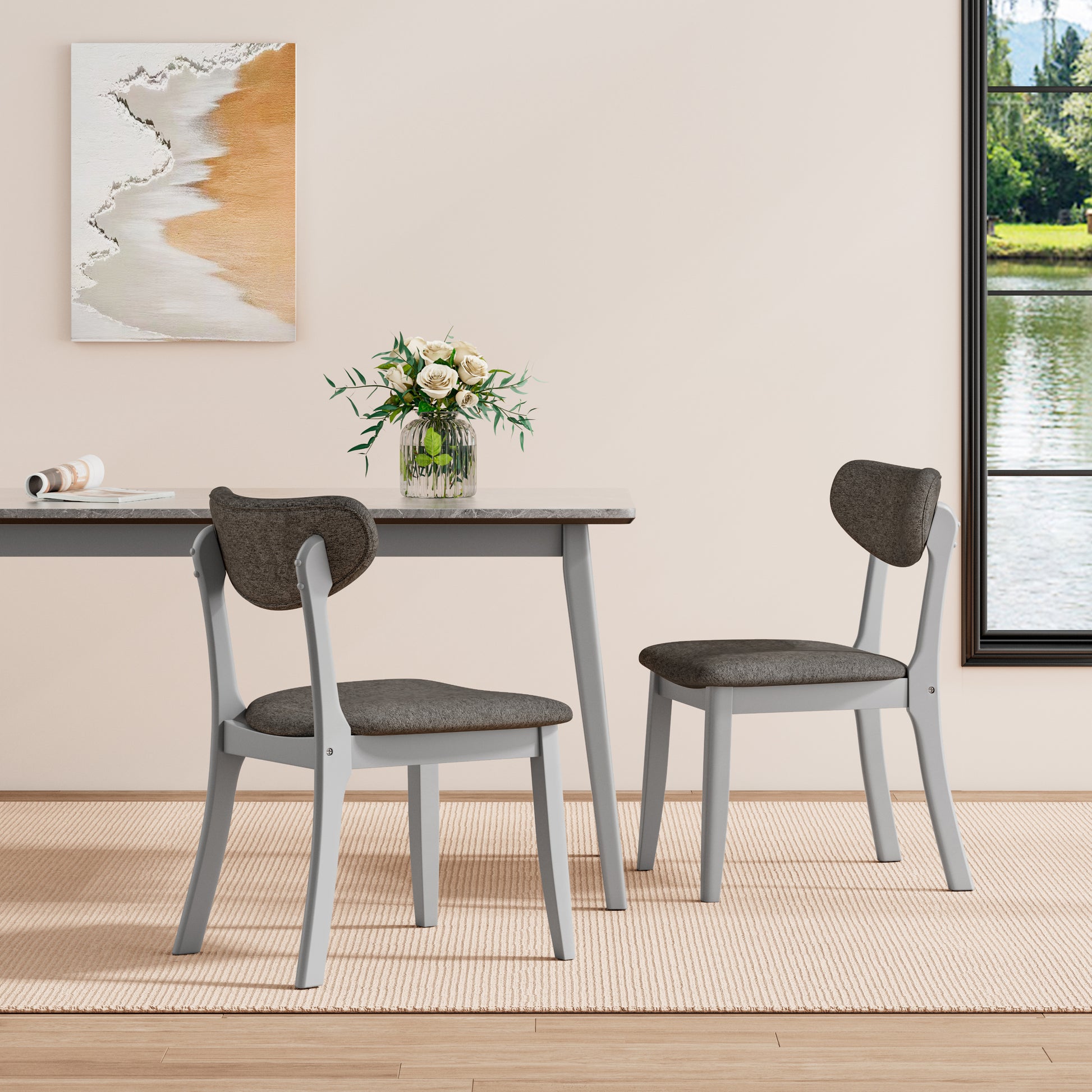 Add a touch of modern elegance to your dining space with these gray finish dining chairs. These 2 pack dining chairs feature a sleek gray finish, offering a chic and contemporary look that complements a variety of interior styles. Constructed from high-quality hardwood, these chairs ensure durability and sturdiness, providing a reliable seating option for years to come. The seats are upholstered in a stain-resistant fabric, making them easy to clean and maintain, perfect for everyday use. Designed for your convenience, these chairs come with clear instructions and all necessary tools for quick and hassle-free assembly. These chairs are perfect for family dinners, gatherings, and more.