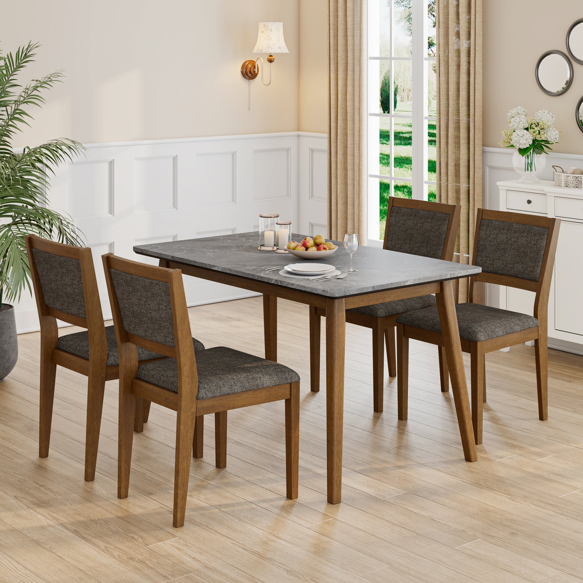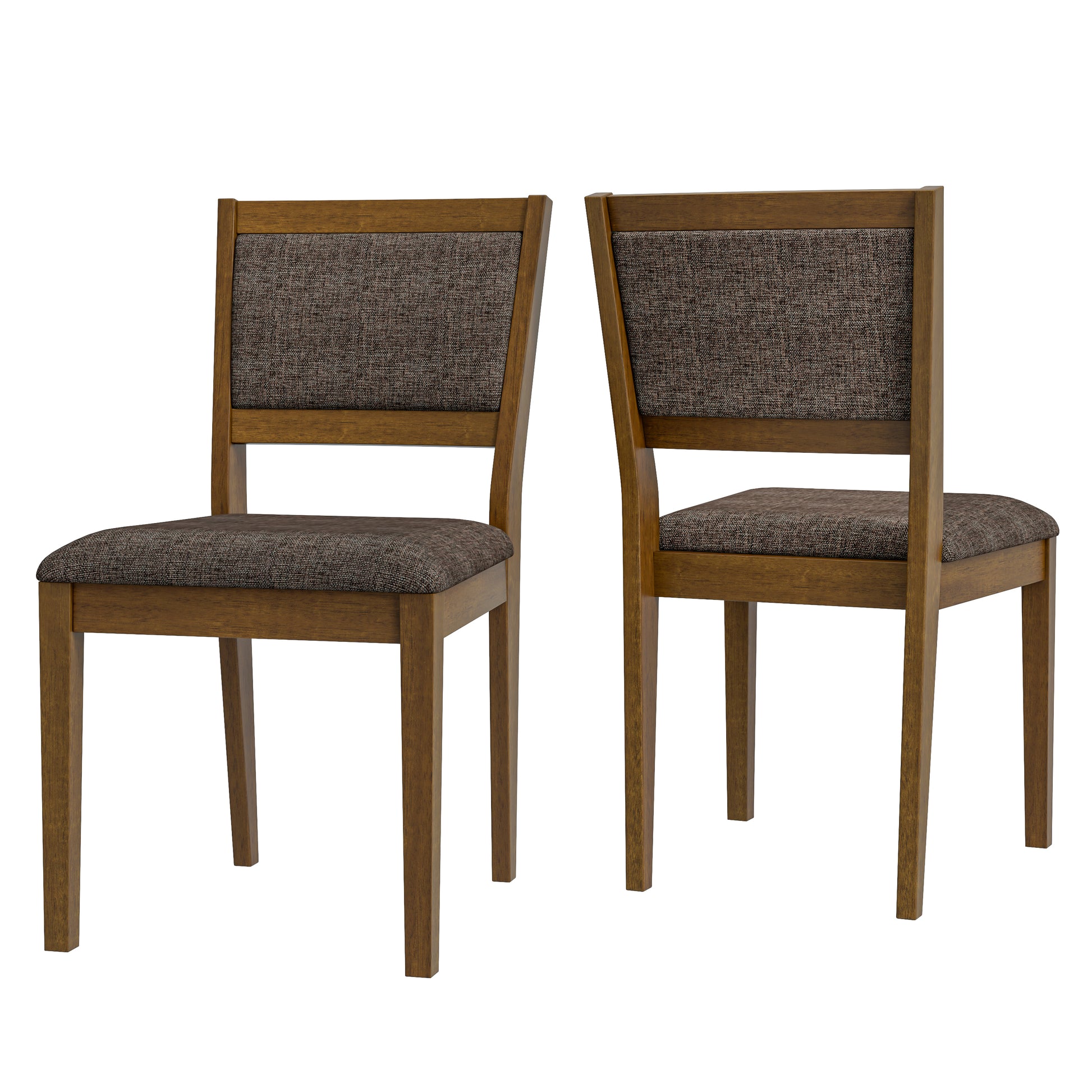 Bring style, comfort, and durability to your dining room with our timeless walnut finish dining chairs. Our sophisticated 2-pack dining chair set brings a touch of class with a beautiful walnut wood finish. Constructed from high-quality hardwood, these chairs ensure durability and sturdiness, providing a reliable seating option for years to come. The seats are upholstered in a stain-resistant fabric, making them easy to clean and maintain, perfect for everyday use. These chairs come with clear instructions and all necessary tools for quick and hassle-free assembly. These chairs are perfect for family dinners, gatherings, and more.