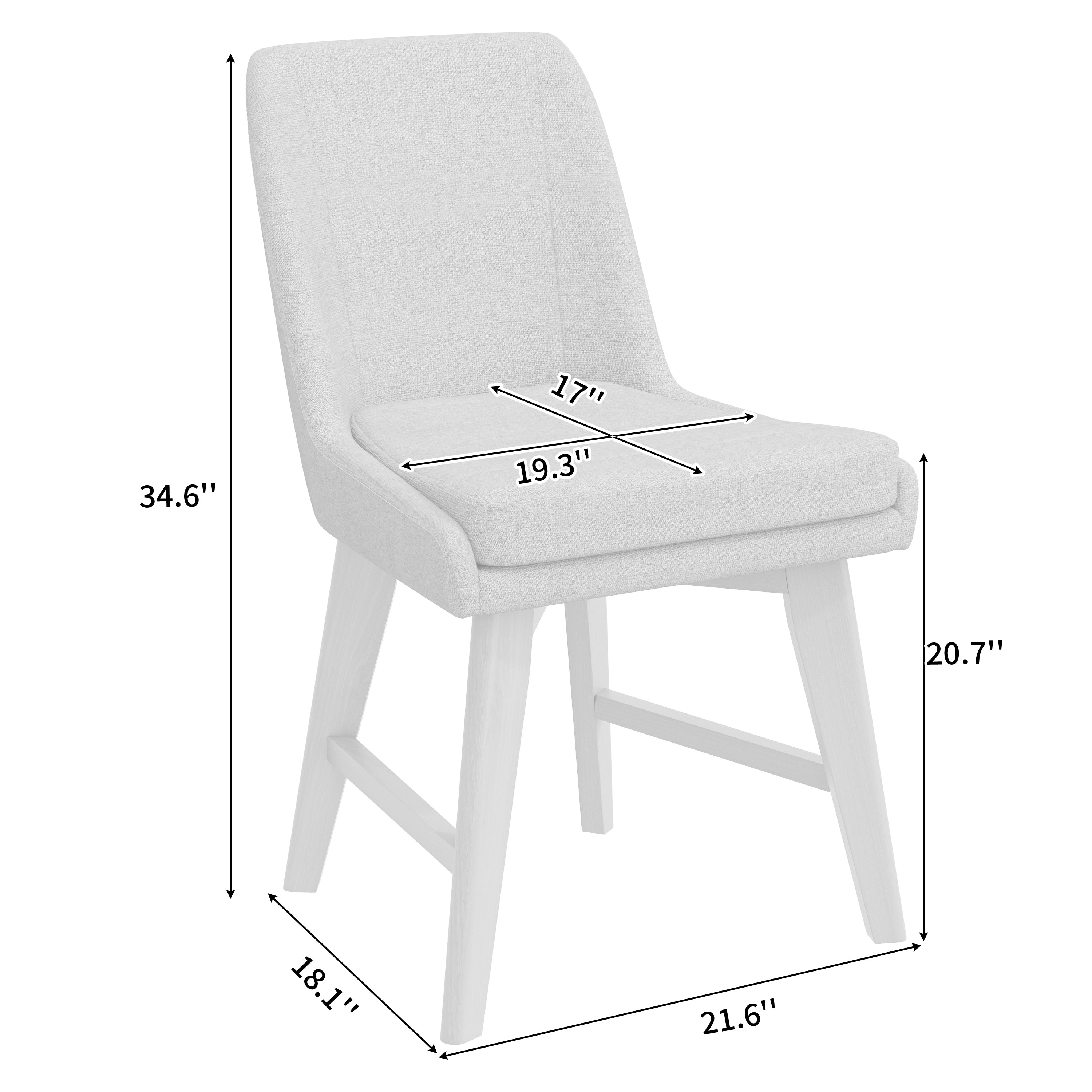 Elevate your dining space with this exquisite 2-pack dining chair set designed to capture a clean and minimalist style. These chairs boast a lovely white wash natural finish that adds a touch of rustic elegance and brightness to any dining space. Constructed from high-quality hardwood, these chairs ensure durability and sturdiness, providing a reliable seating option for years to come. The seats are upholstered in a stain-resistant fabric, making them easy to clean and maintain, perfect for everyday use. Designed for your convenience, these chairs come with clear instructions and all necessary tools for quick and hassle-free assembly. These chairs are perfect for family dinners, gatherings, and more.