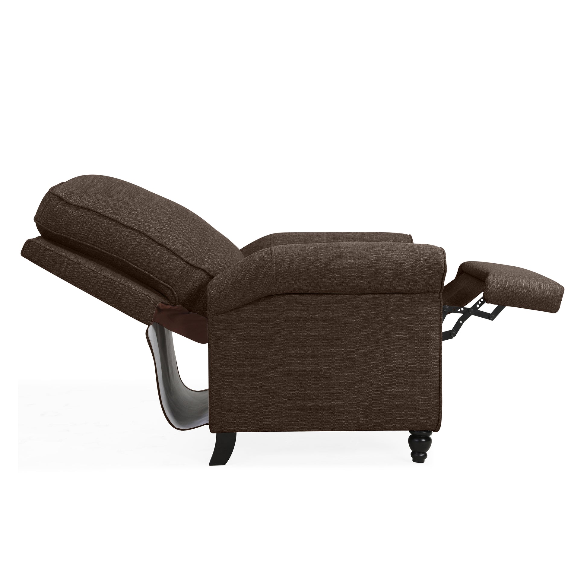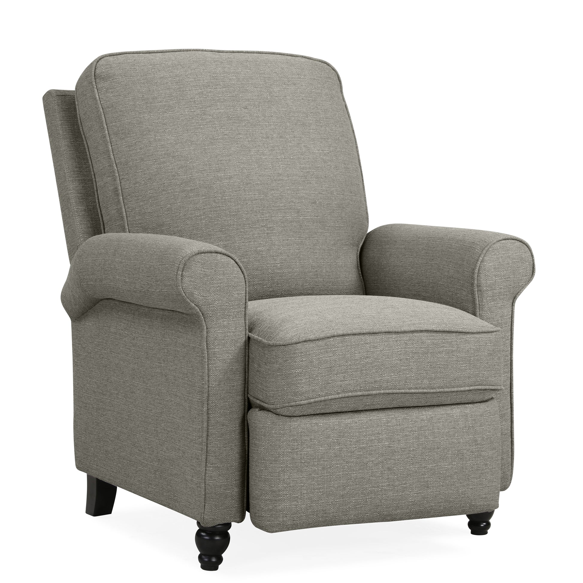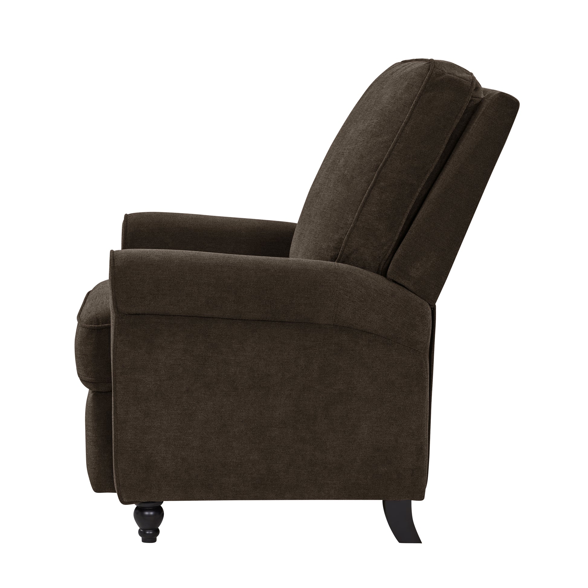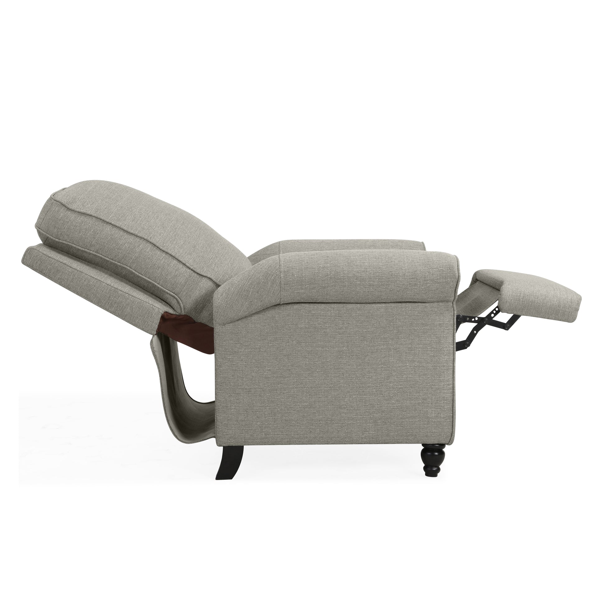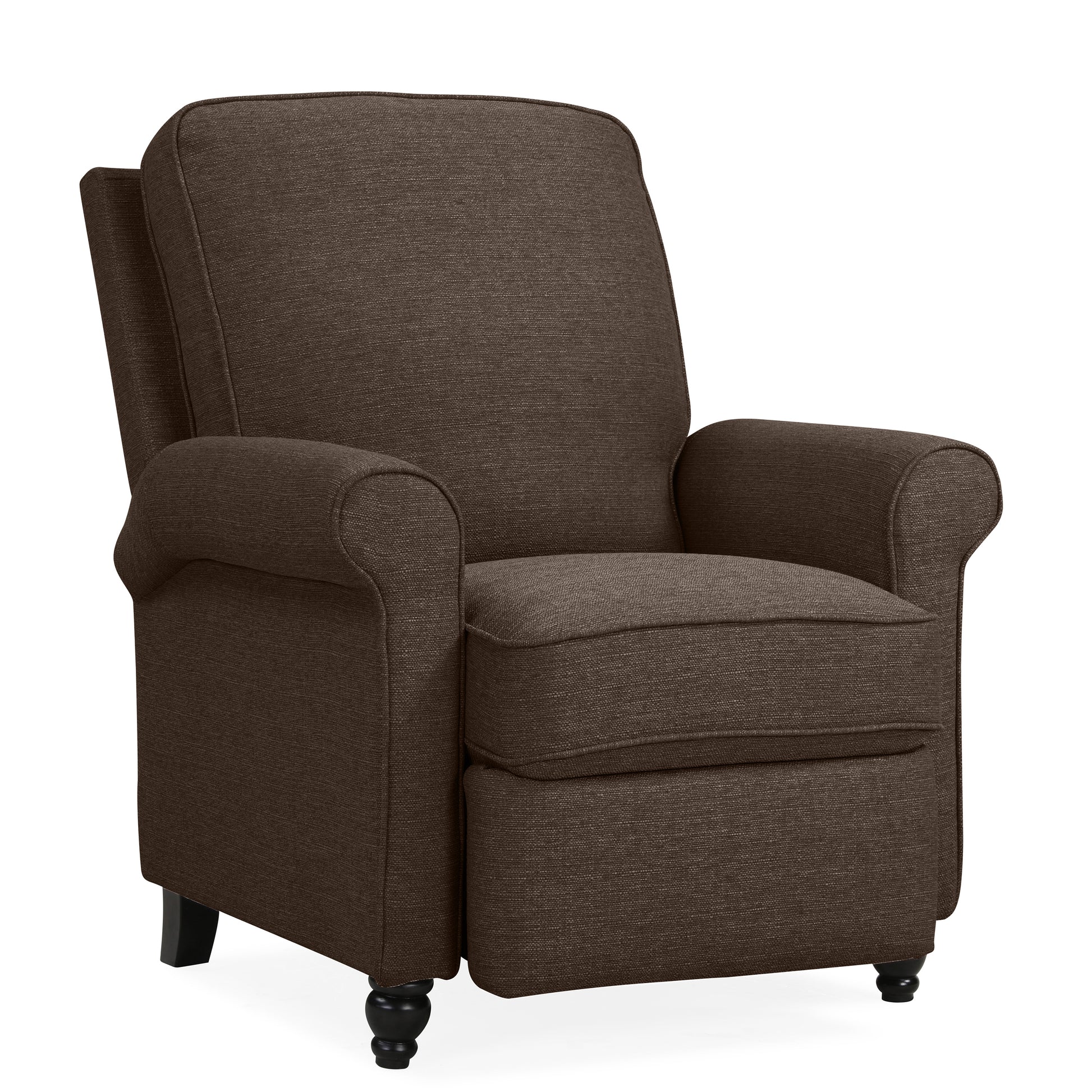 Whether watching TV or lounging in a relaxed recline, this pushback recliner with a square back and rolled arms offers the utmost in comfort. Simply push back to recline, no buttons or levers required! The chair has a transitional design that is perfectly at home in modern and traditional settings alike. Wrapped pocket coils, a sinuous-spring seat deck and polyester foam and fiberfill offer a custom seating experience.