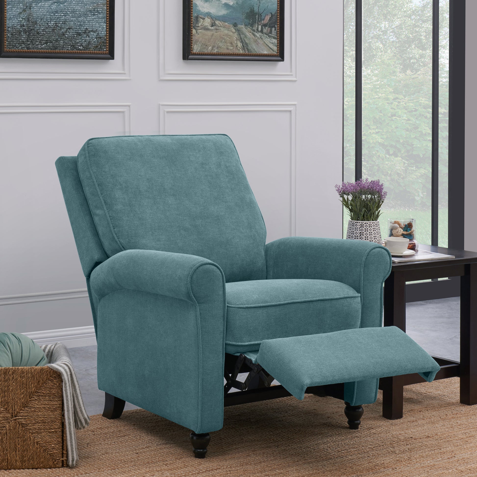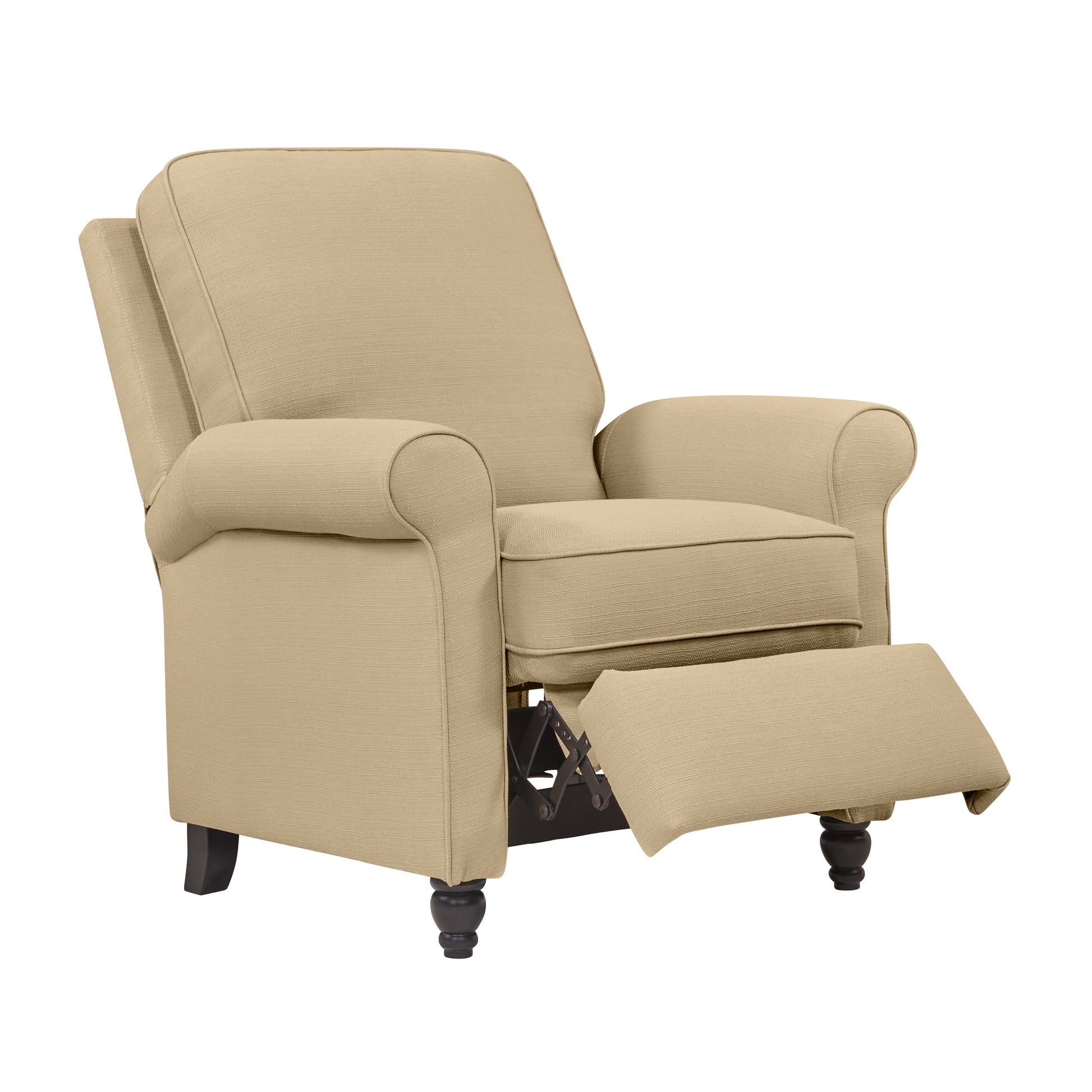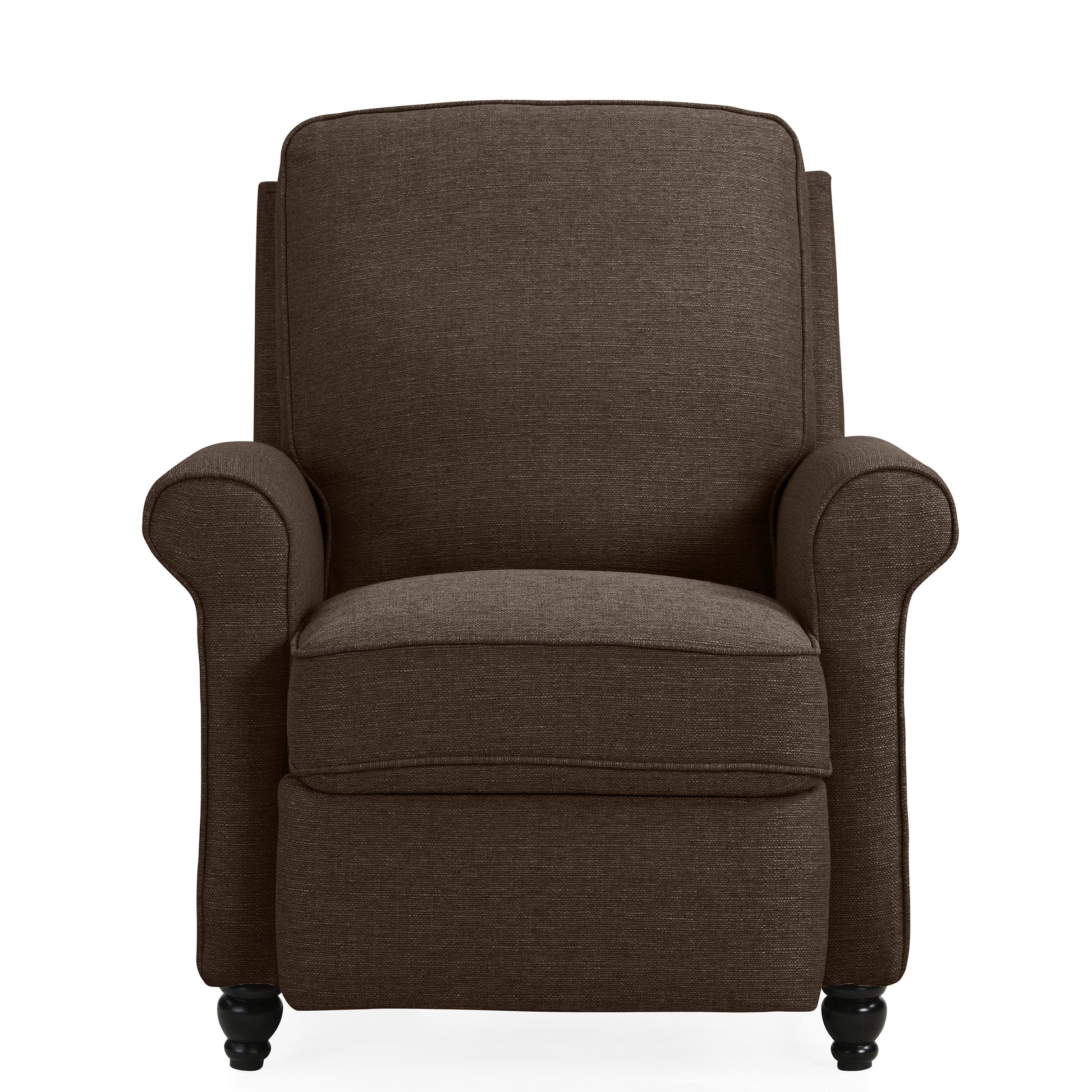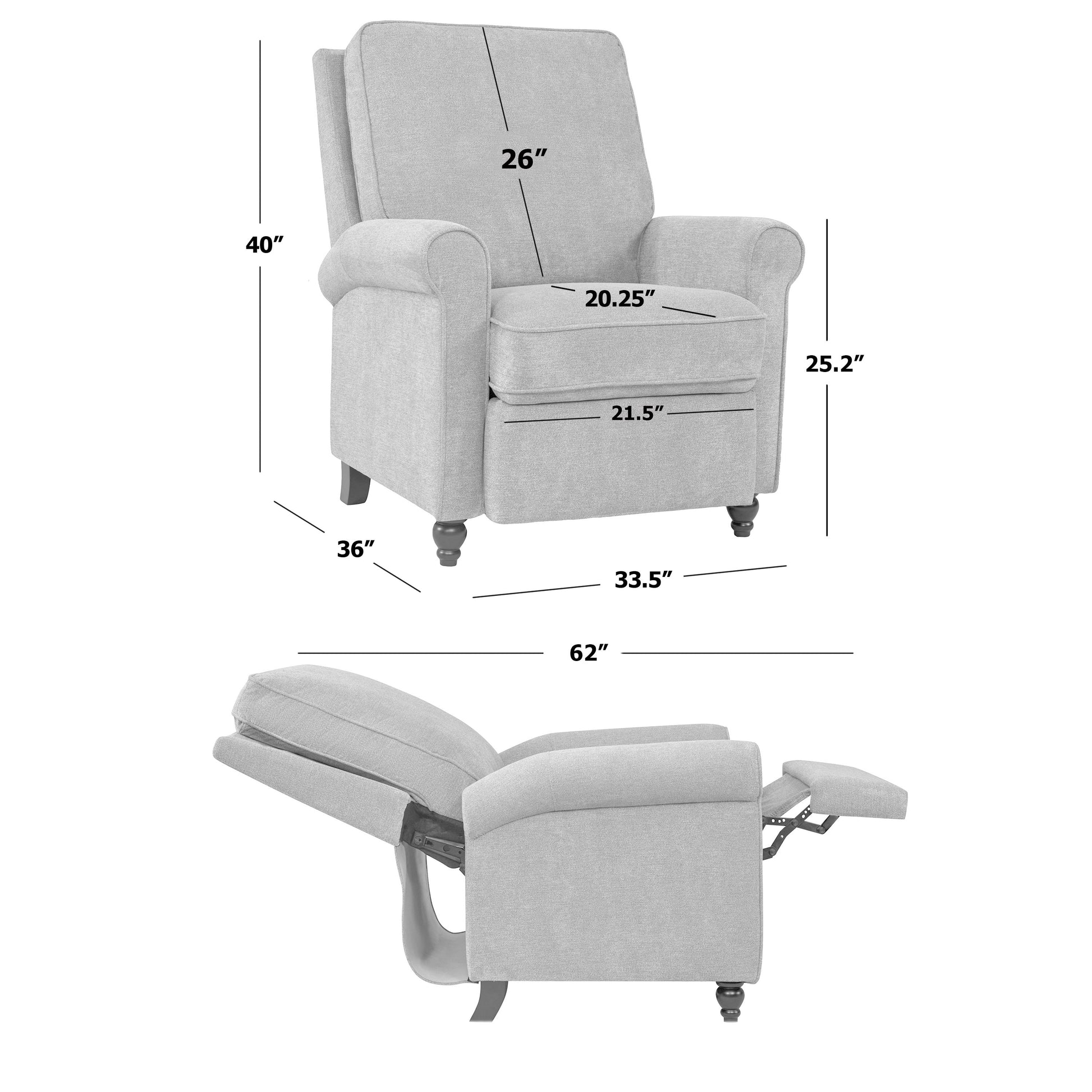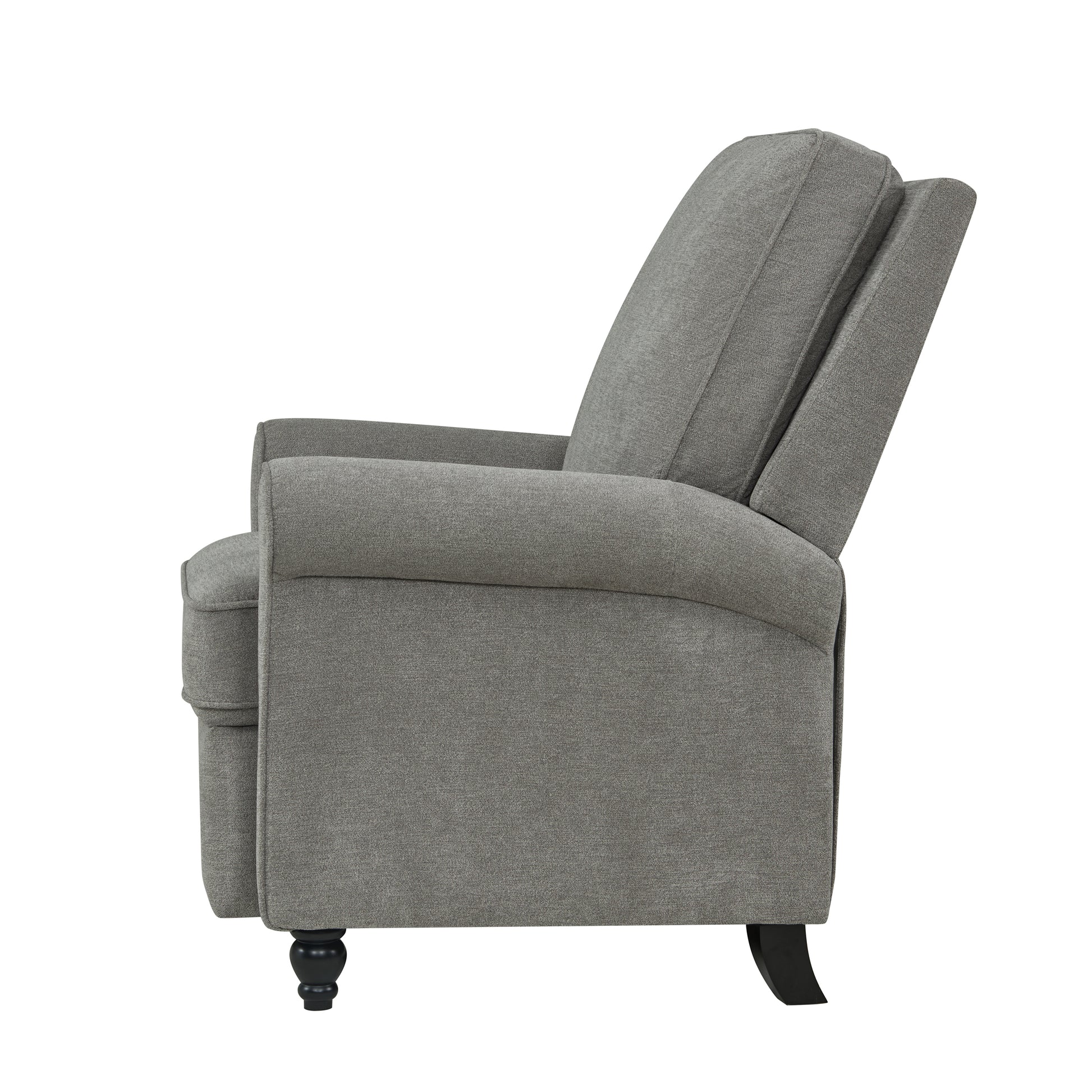 Whether watching TV or lounging in a relaxed recline, this pushback recliner with a square back and rolled arms offers the utmost in comfort. Simply push back to recline, no buttons or levers required! The chair has a transitional design that is perfectly at home in modern and traditional settings alike. Wrapped pocket coils, a sinuous-spring seat deck and polyester foam and fiberfill offer a custom seating experience.