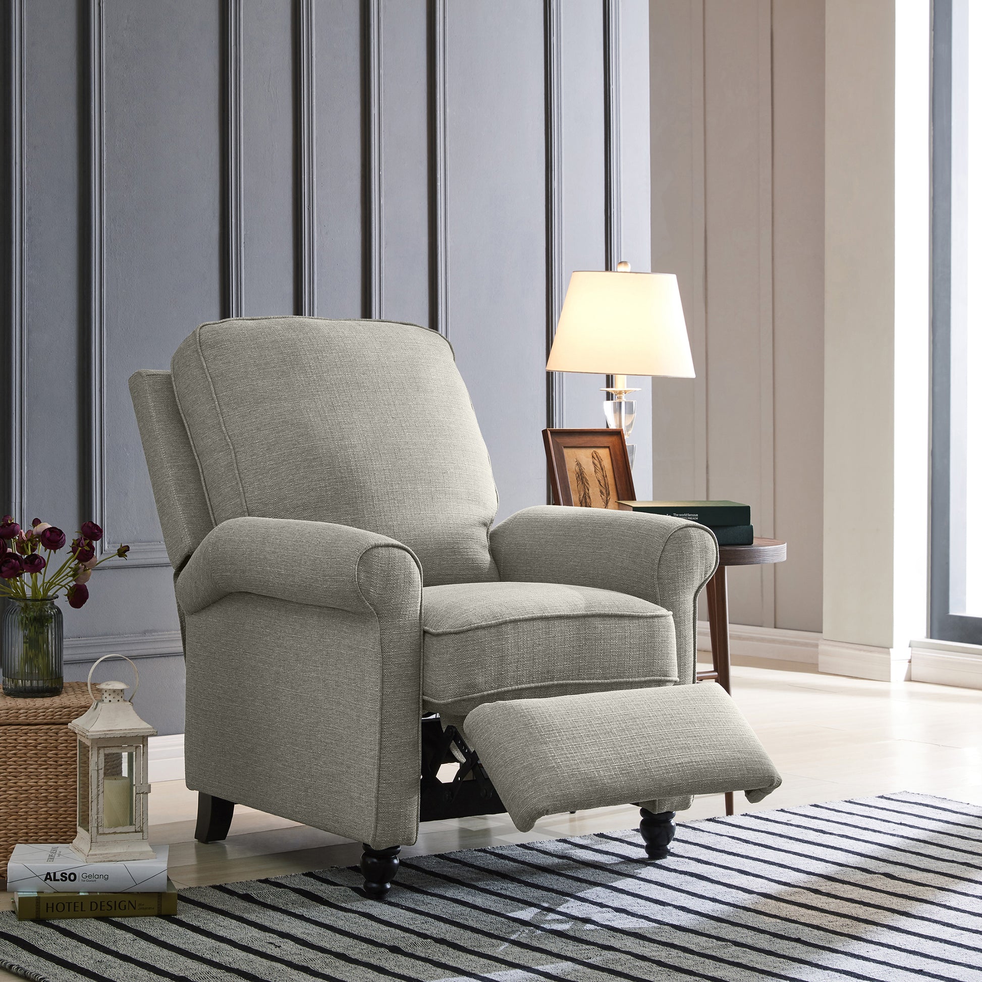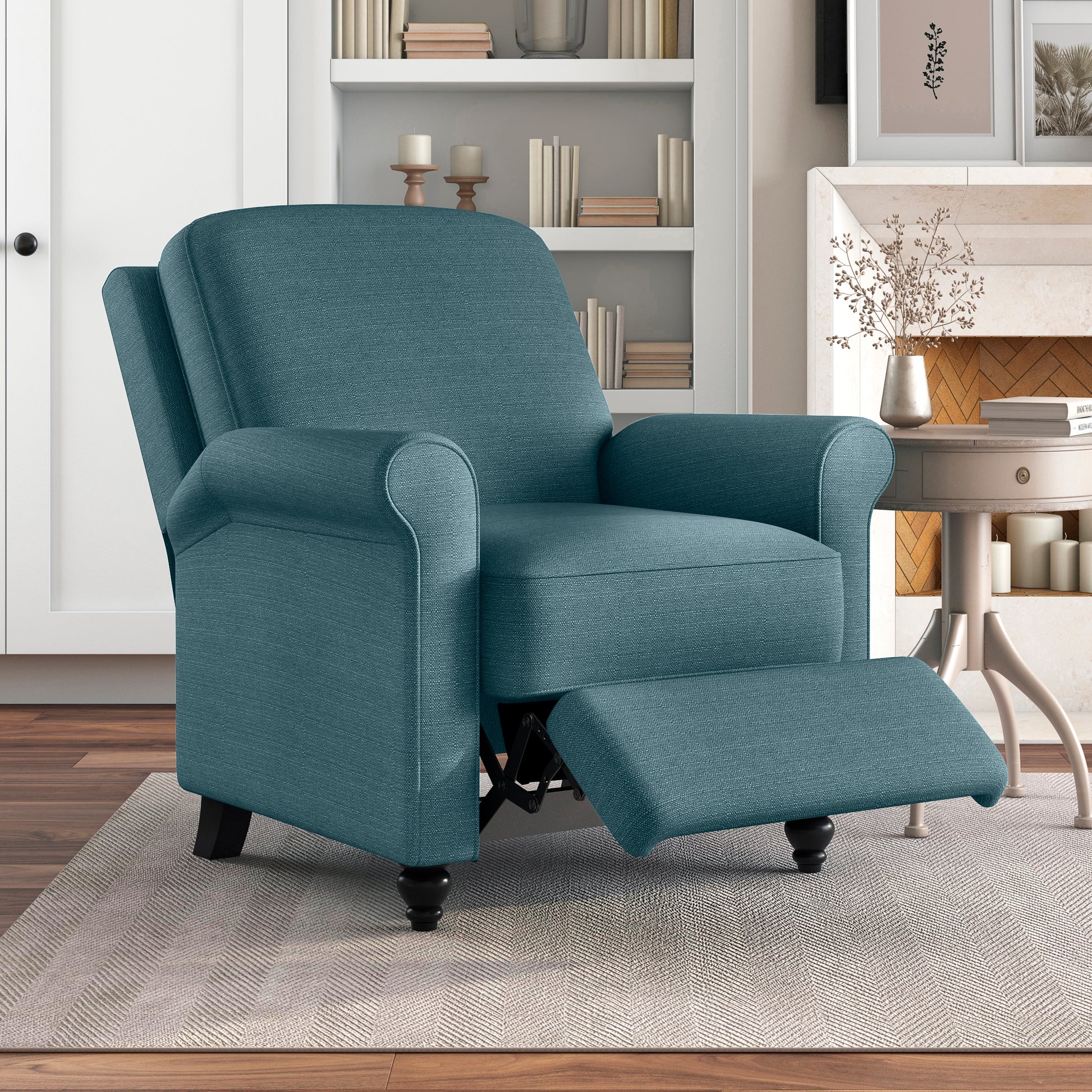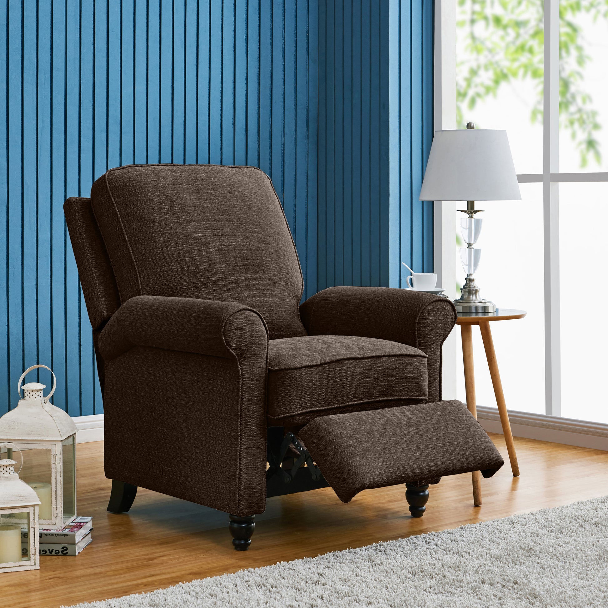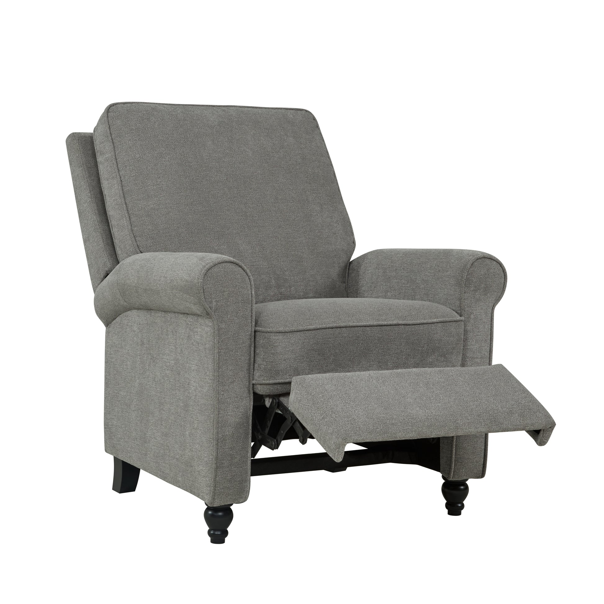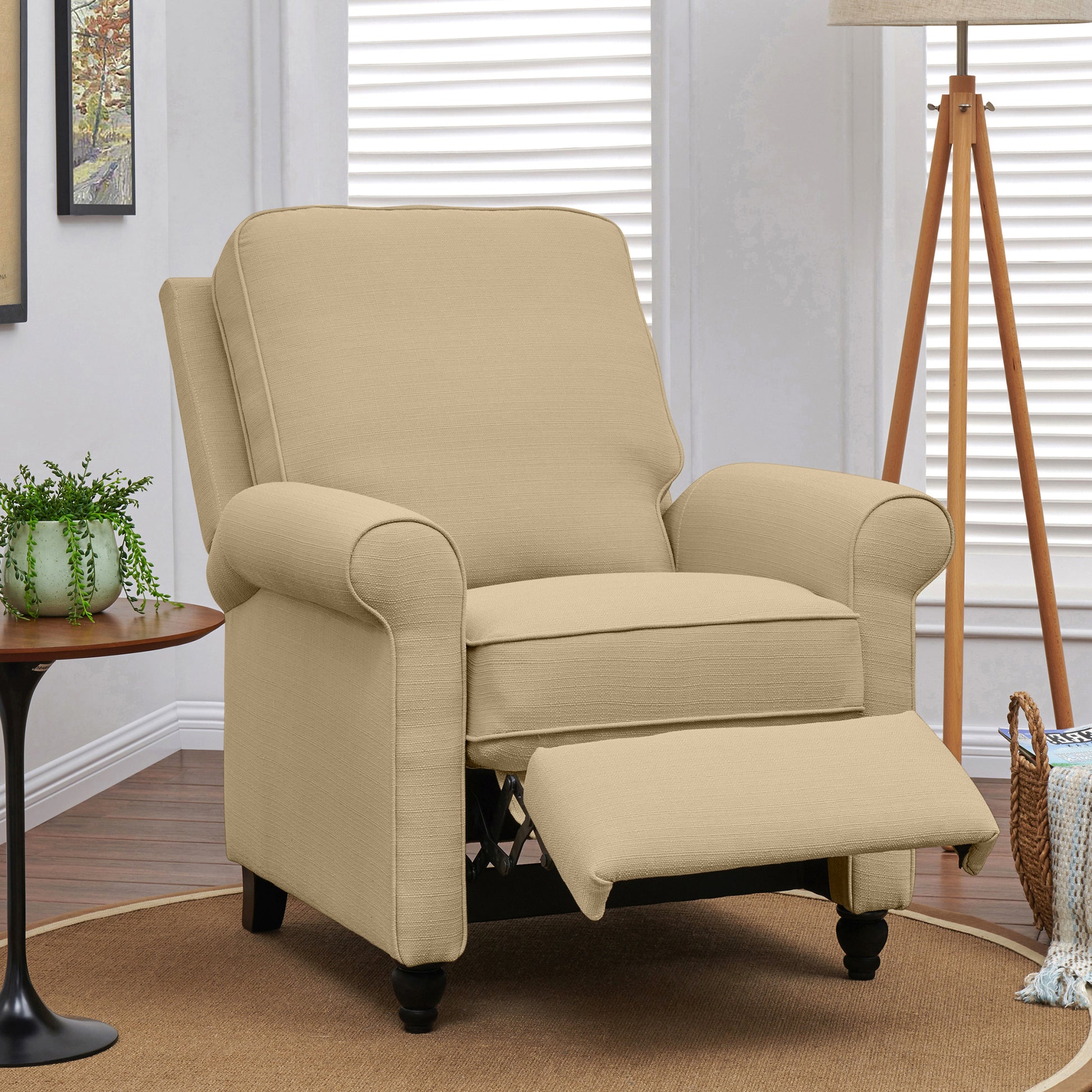 Whether watching TV or lounging in a relaxed recline, this pushback recliner with a square back and rolled arms offers the utmost in comfort. Simply push back to recline, no buttons or levers required! The chair has a transitional design that is perfectly at home in modern and traditional settings alike. Wrapped pocket coils, a sinuous-spring seat deck and polyester foam and fiberfill offer a custom seating experience.