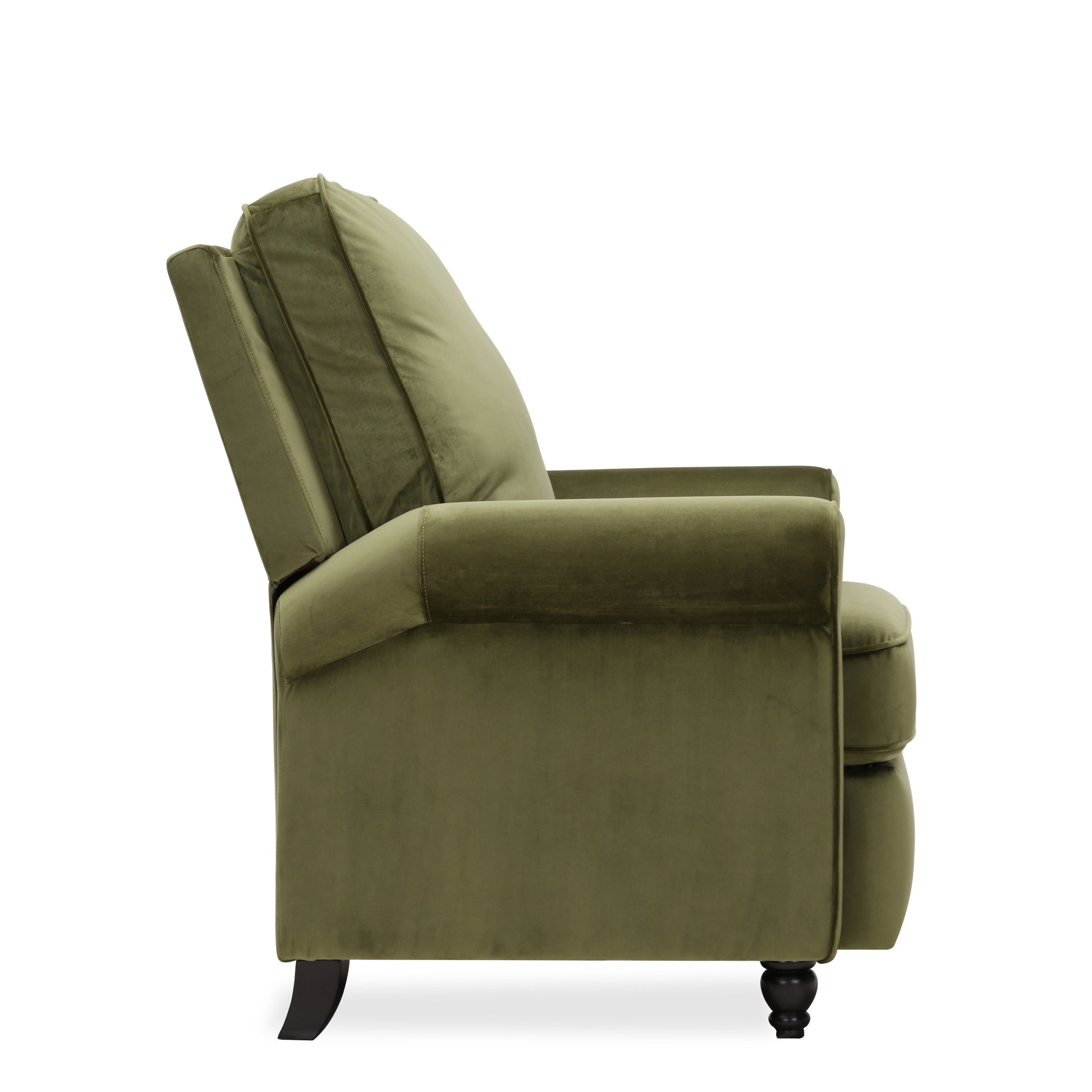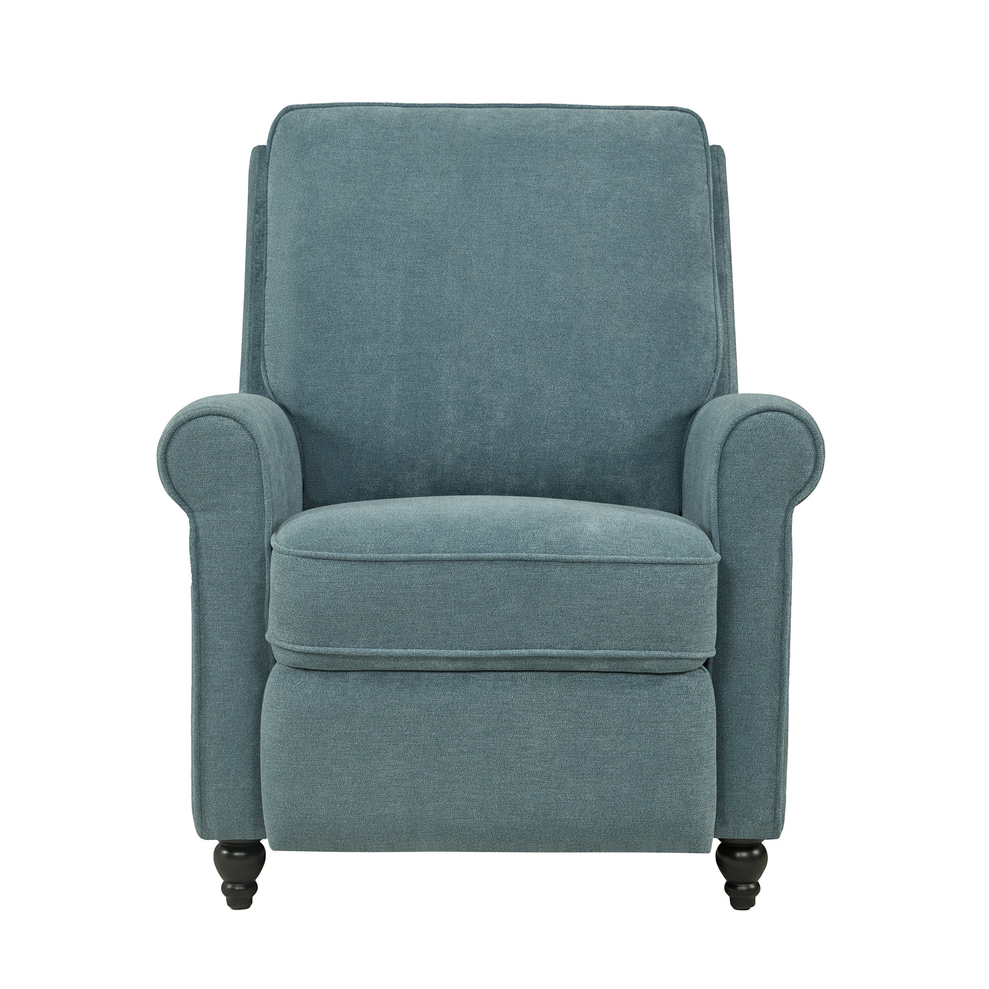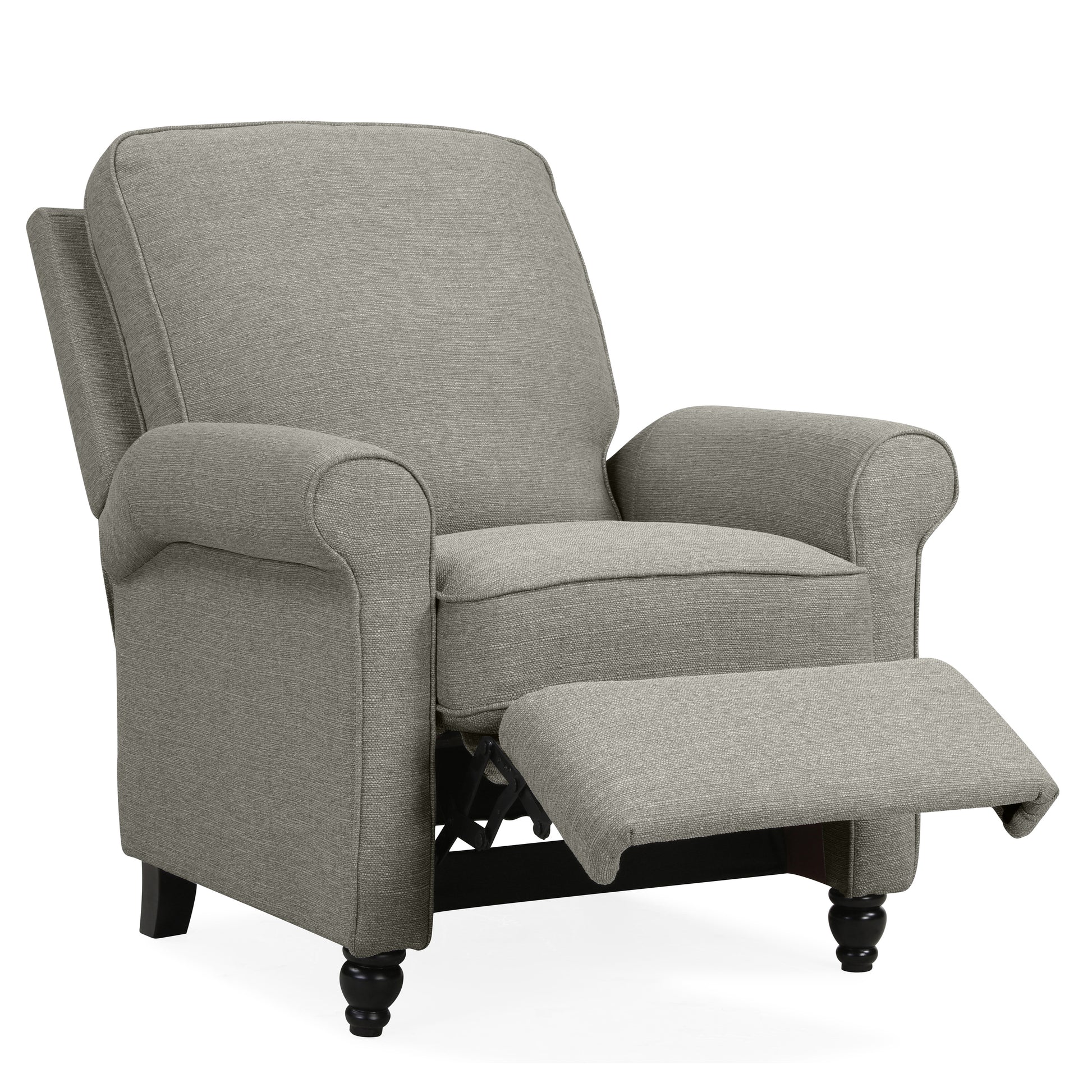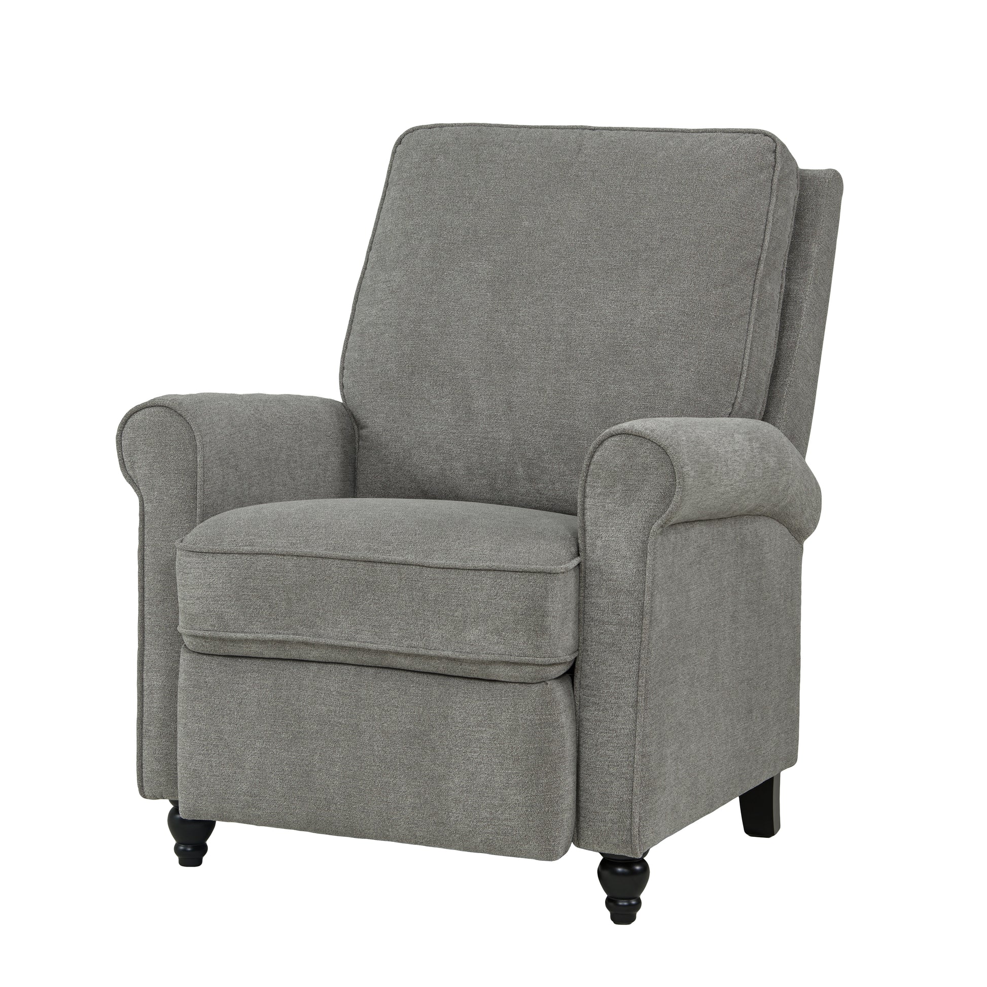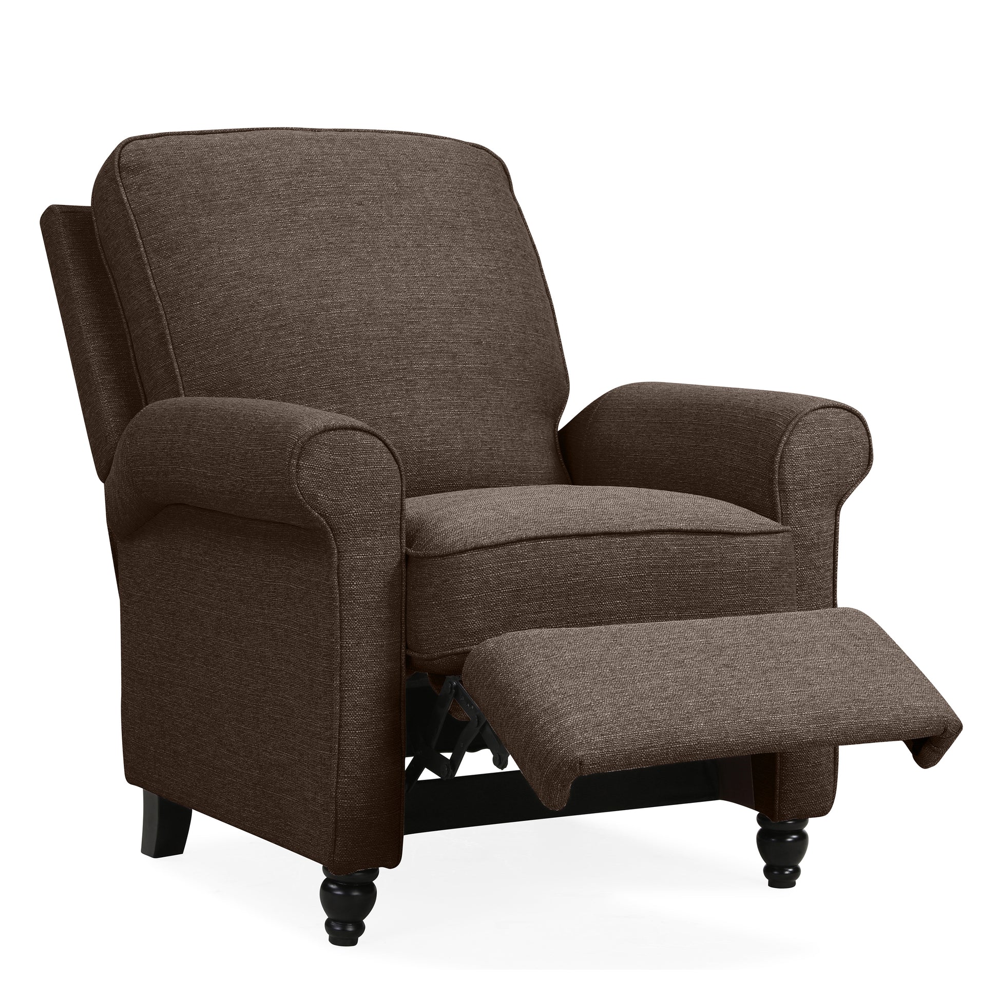 Whether watching TV or lounging in a relaxed recline, this pushback recliner with a square back and rolled arms offers the utmost in comfort. Simply push back to recline, no buttons or levers required! The chair has a transitional design that is perfectly at home in modern and traditional settings alike. Wrapped pocket coils, a sinuous-spring seat deck and polyester foam and fiberfill offer a custom seating experience.