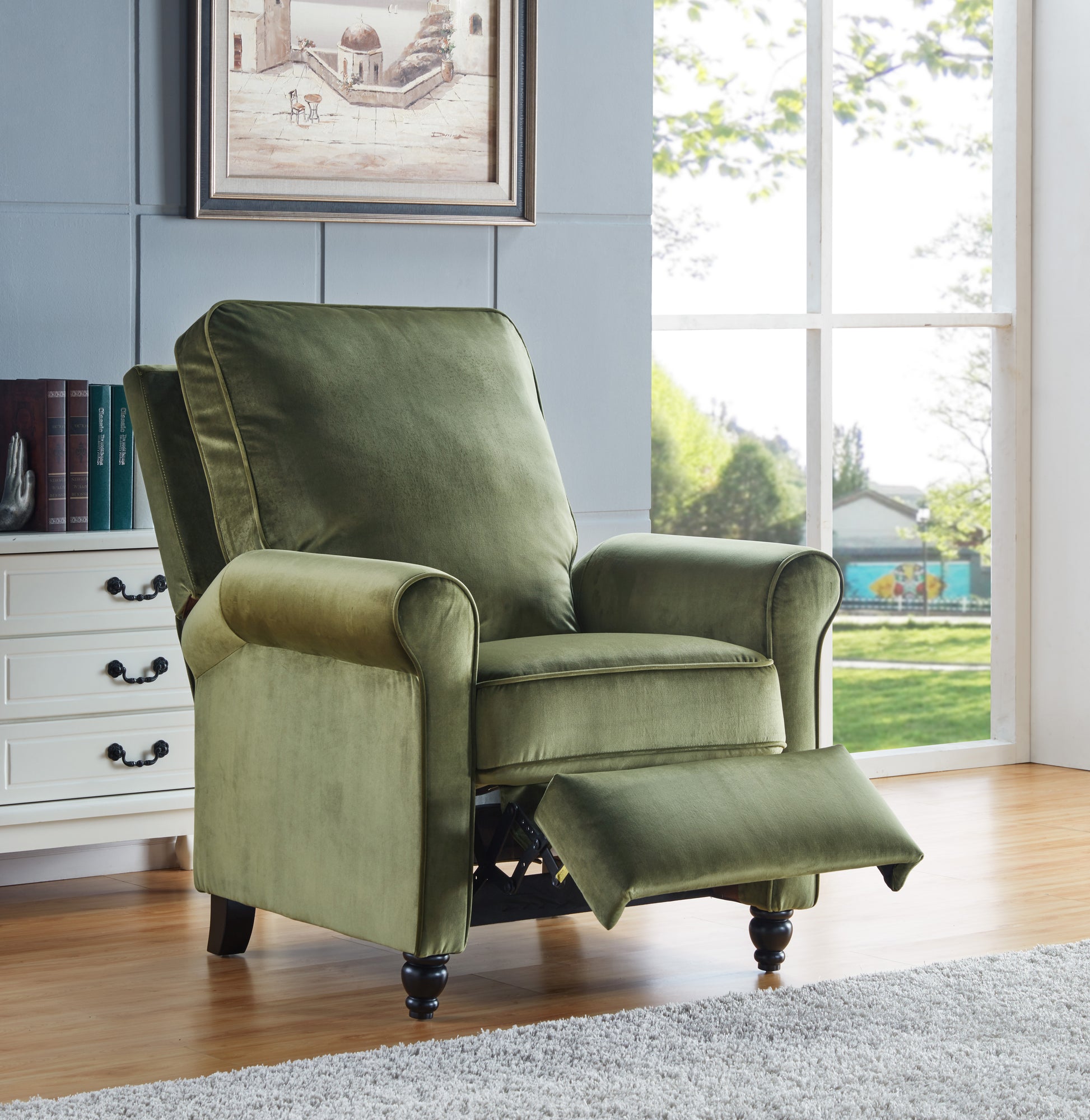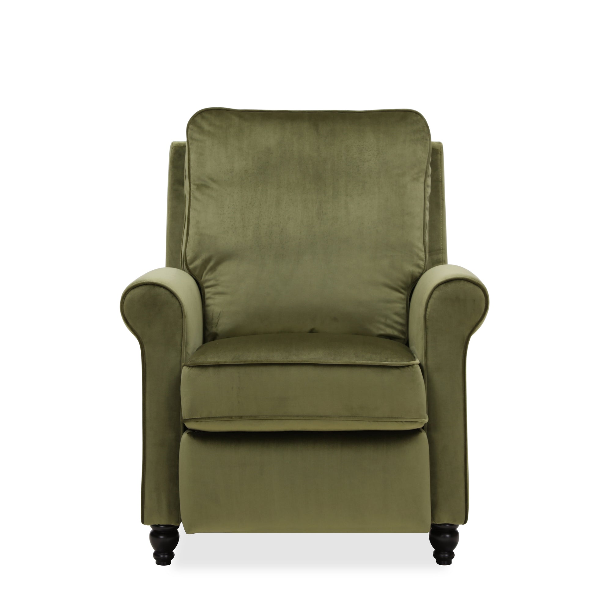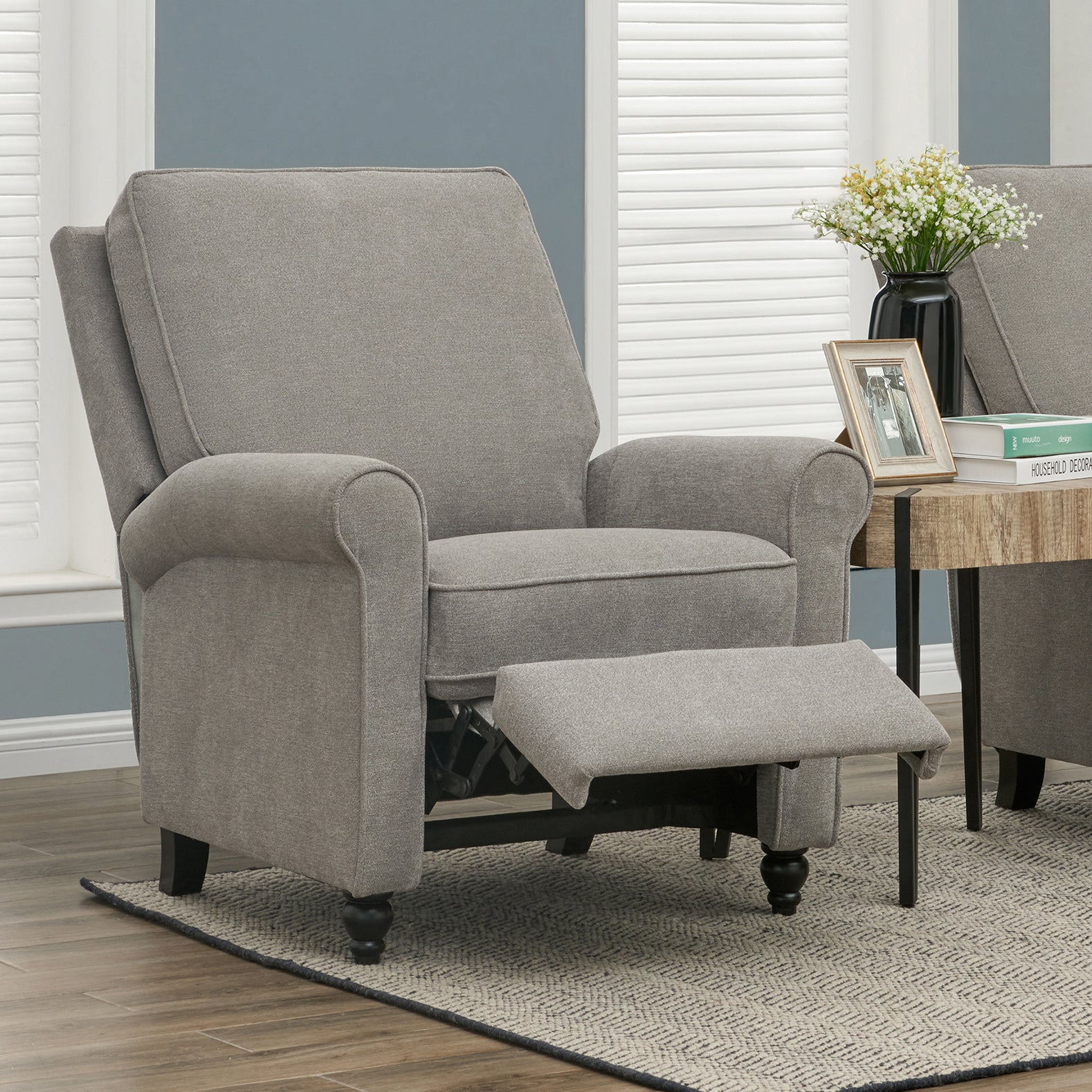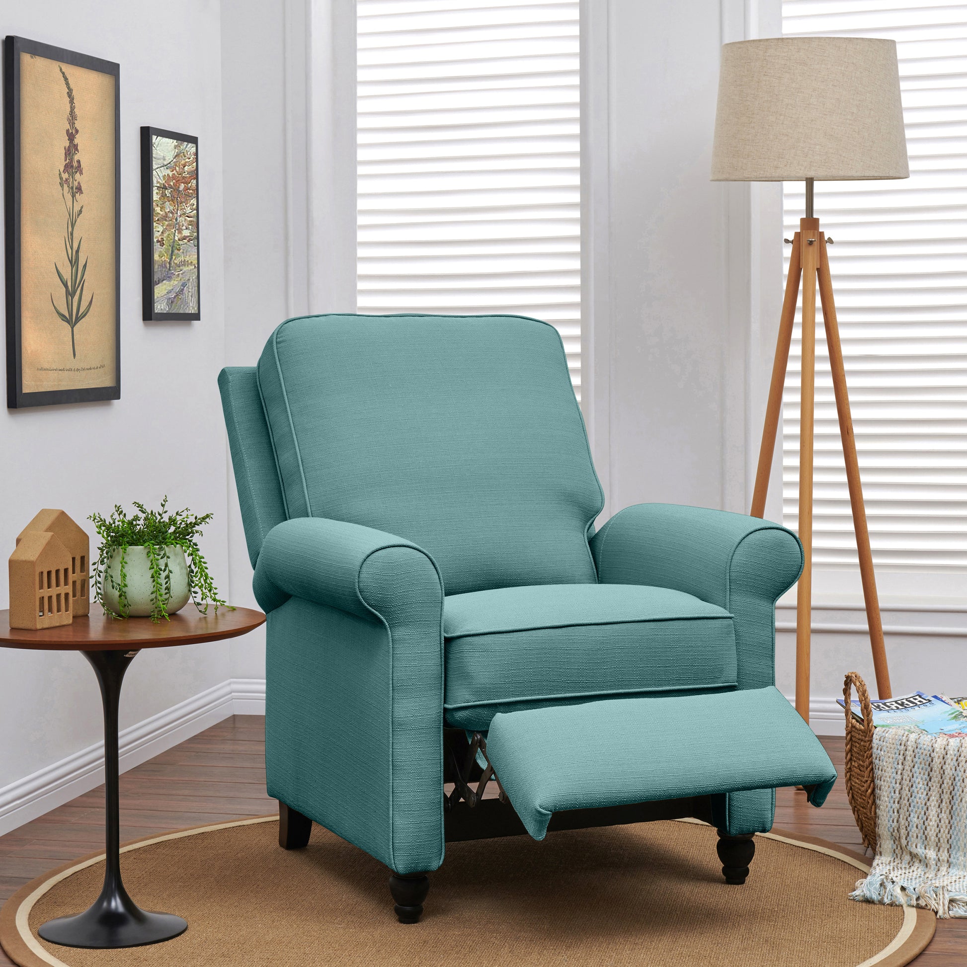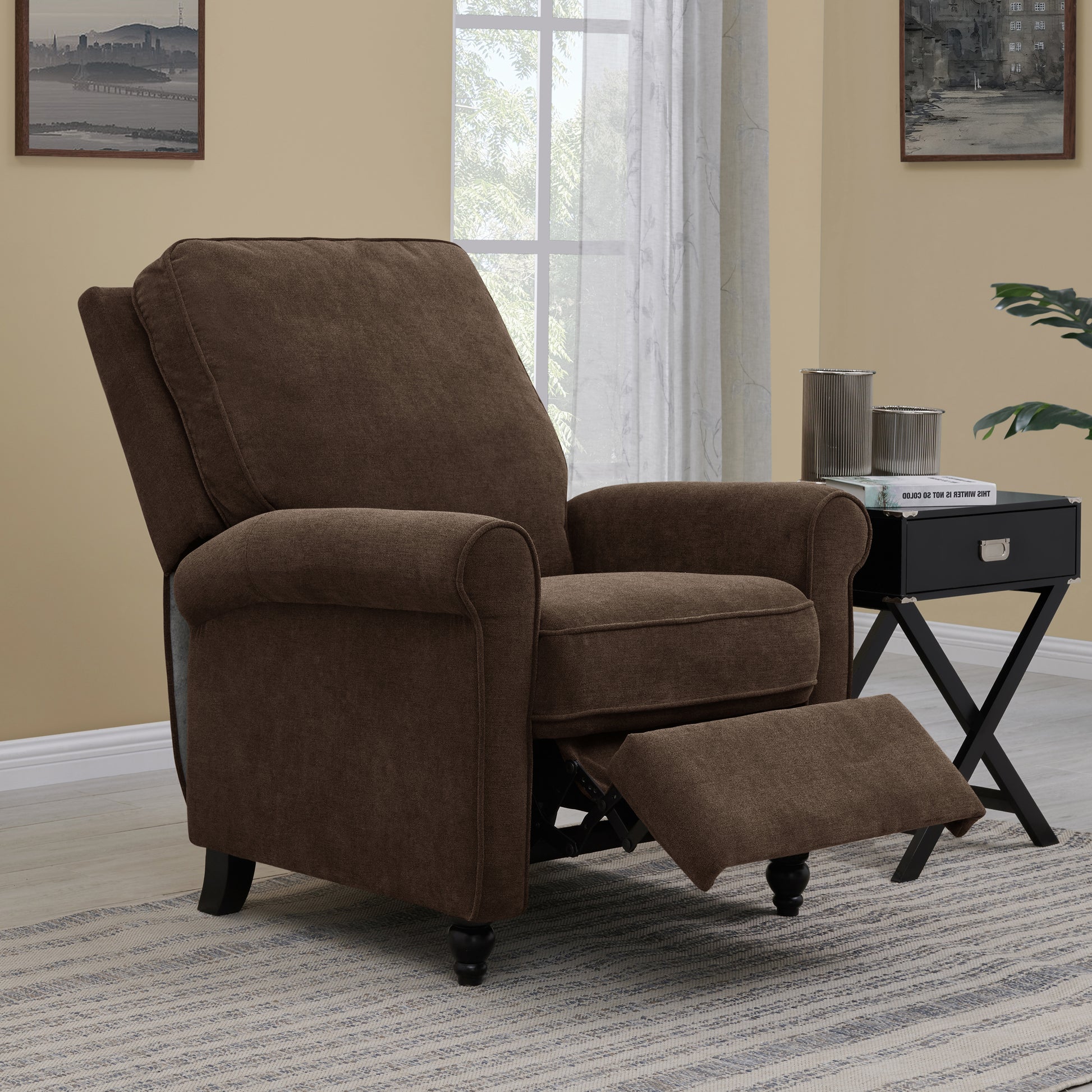Whether watching TV or lounging in a relaxed recline, this pushback recliner with a square back and rolled arms offers the utmost in comfort. Simply push back to recline, no buttons or levers required! The chair has a transitional design that is perfectly at home in modern and traditional settings alike. Wrapped pocket coils, a sinuous-spring seat deck and polyester foam and fiberfill offer a custom seating experience.